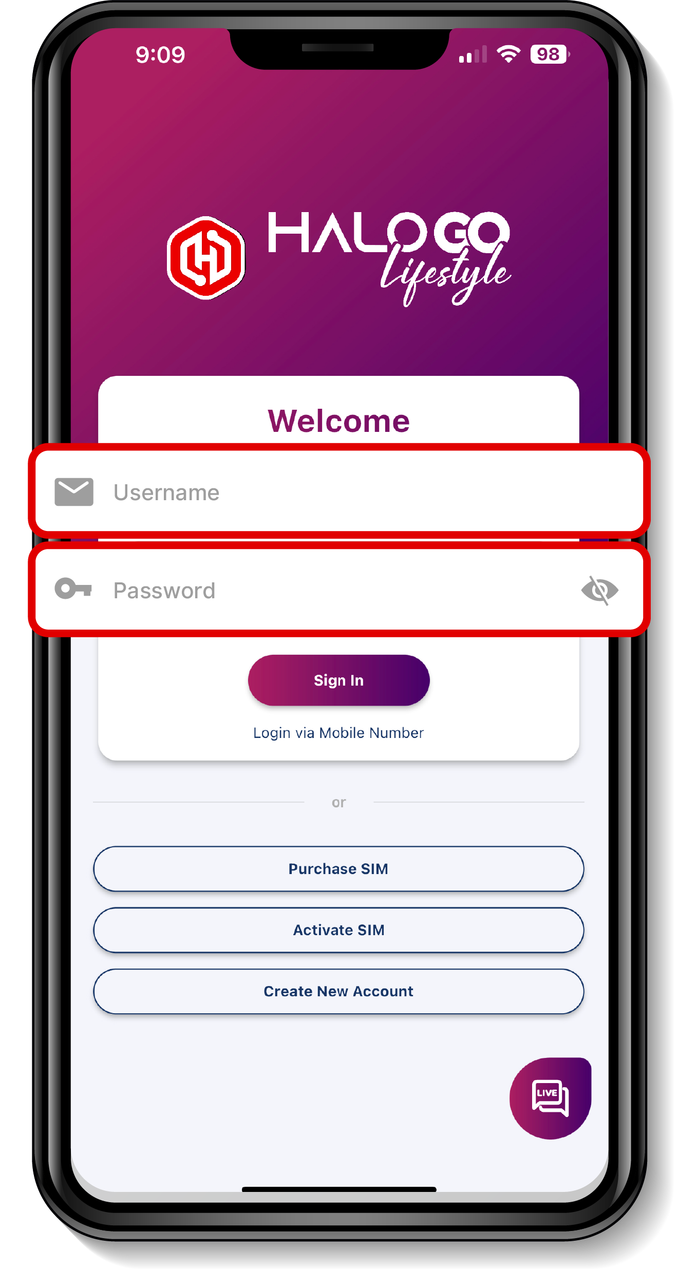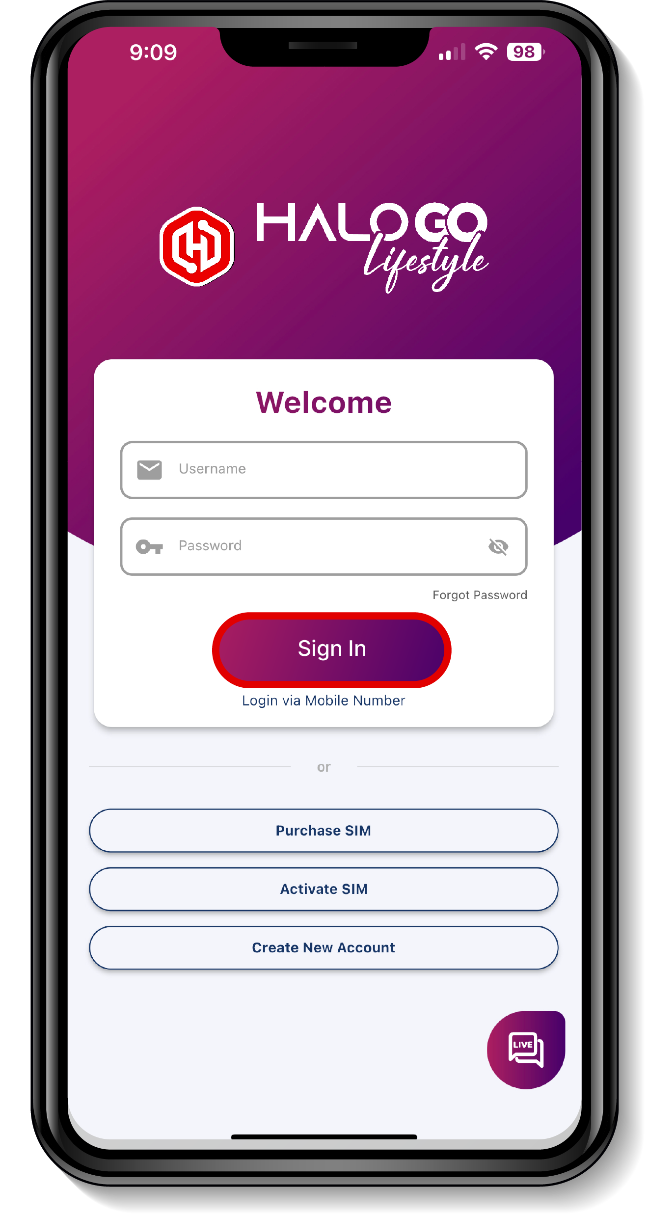 Log masuk aplikasi Halo Go Lifestyle