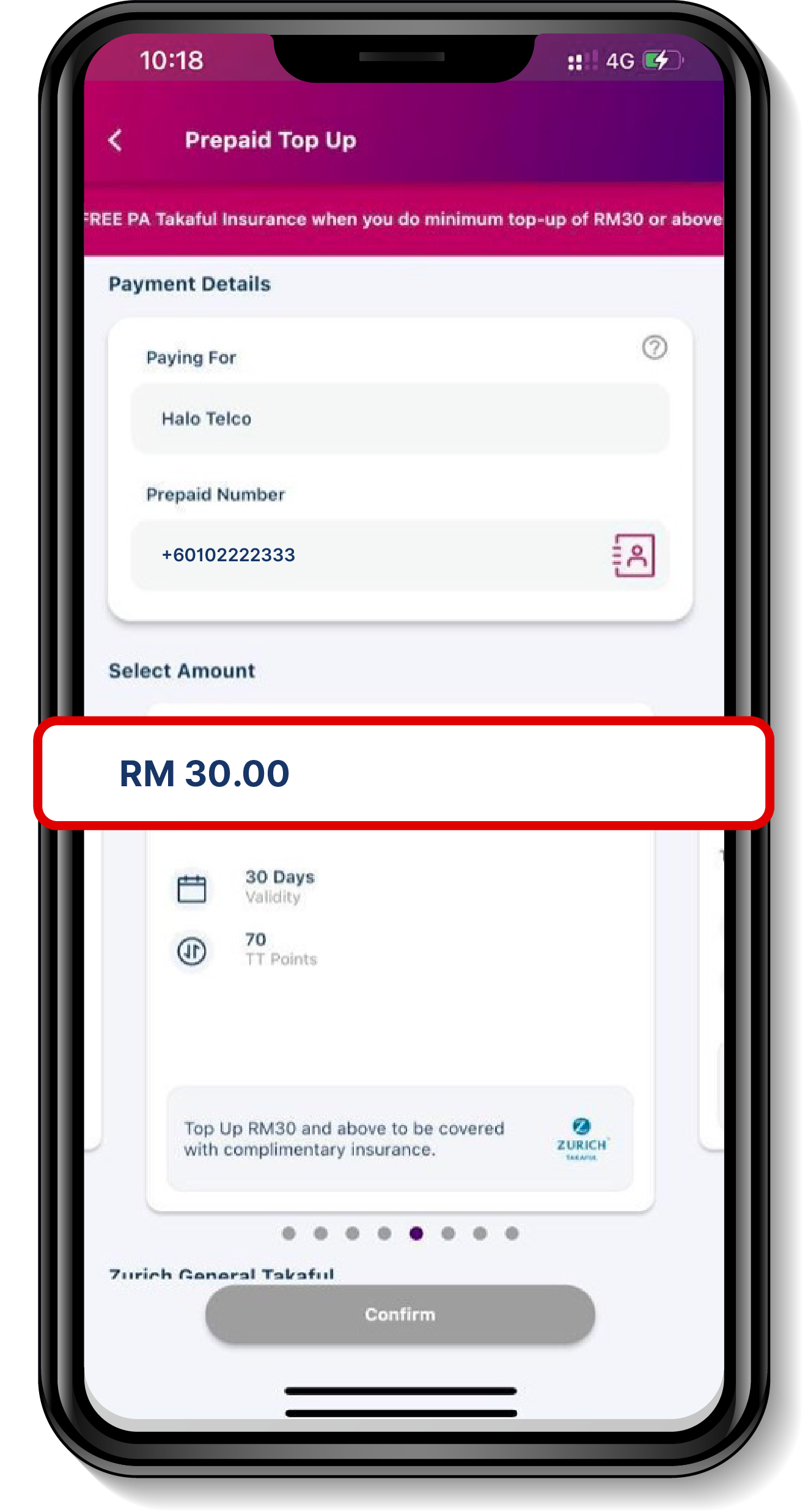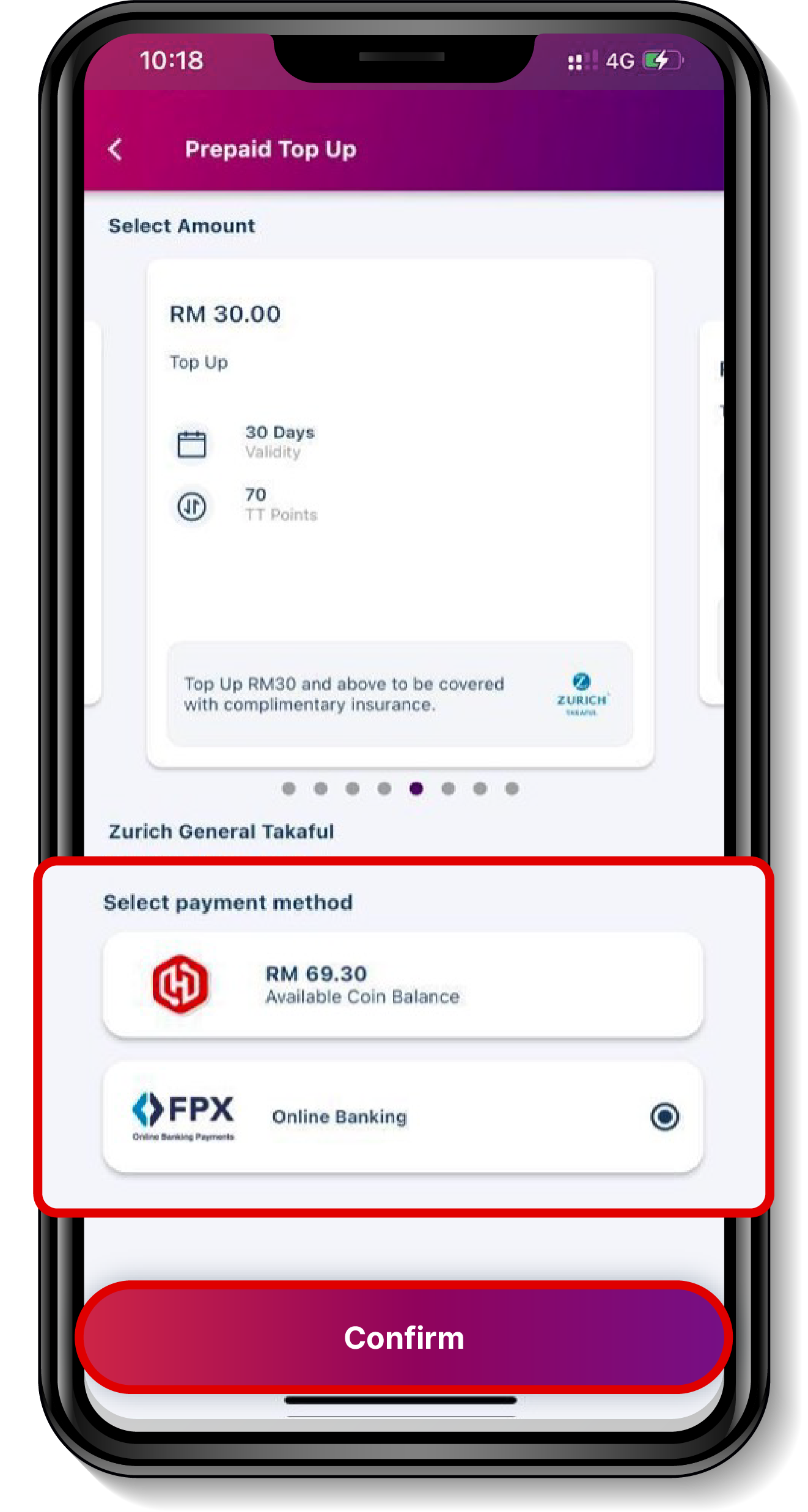 Pilih kaedah “pembayaran” & Klik butang “confirm”